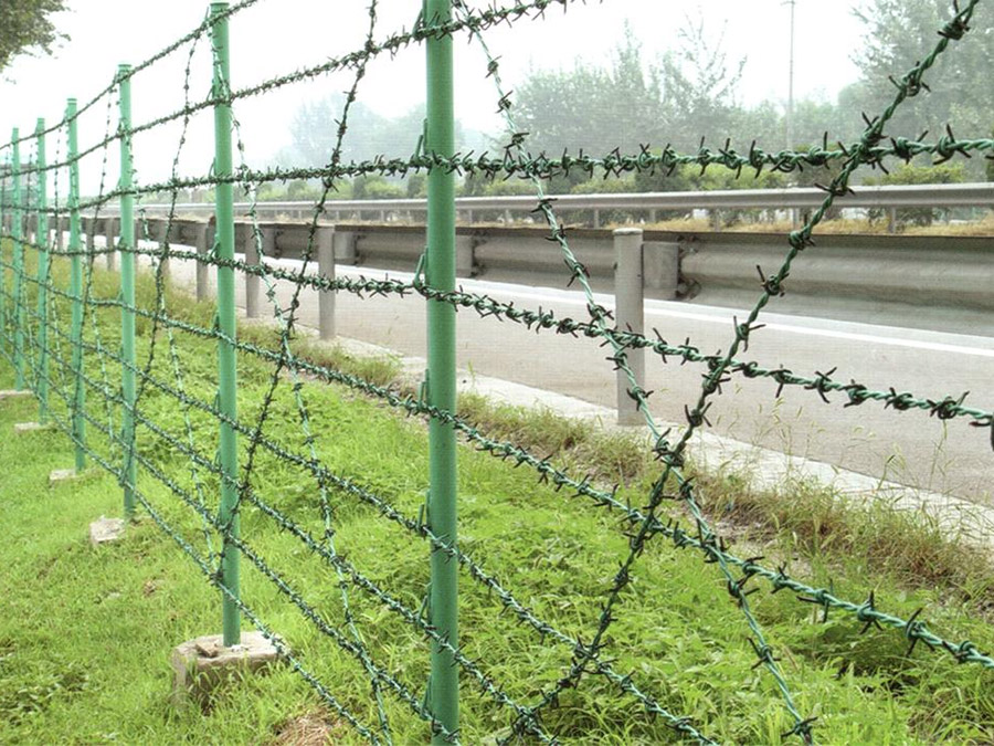 刀片刺繩按照安裝方法不同可分為:(蛇腹式) 螺旋式刀片刺繩,直線型刀片刺繩,平板式刀片刺繩,刀片刺繩焊接網等。片刺繩按照安裝方法不同可分為:(蛇腹式) 螺旋式刀片刺繩,直線型刀片刺繩,平板式刀片刺繩,刀片刺繩焊接網等。是在兩條刀片刺網之間以不銹鋼片和鍍鋅鋼片強力夾扣,展開后即呈交叉狀。